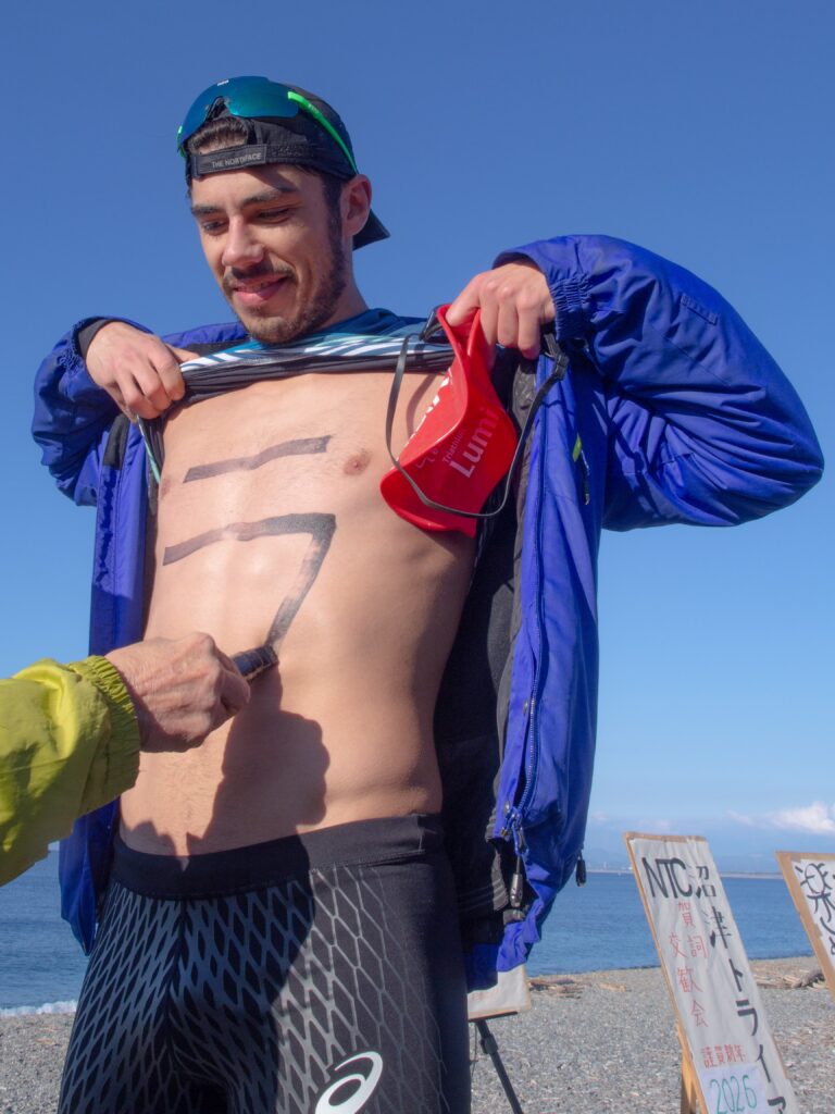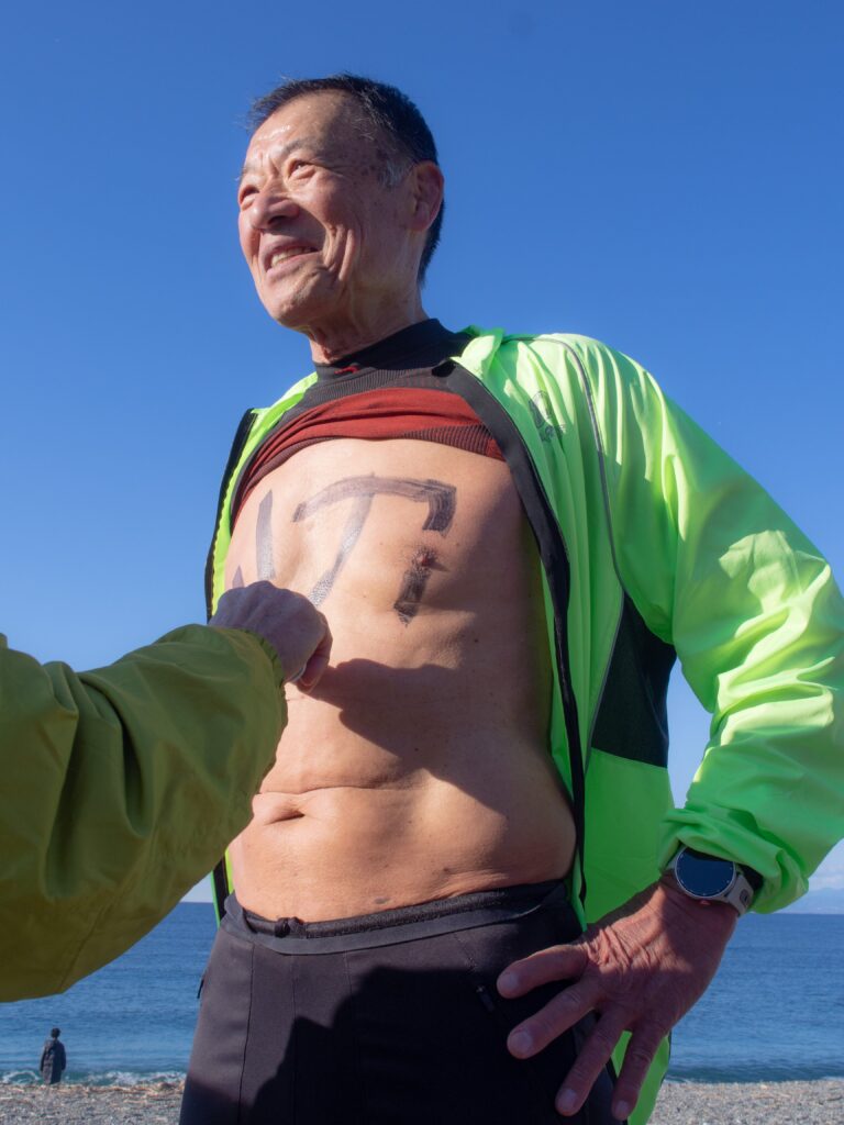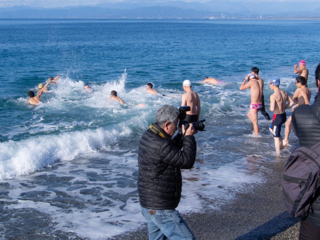 気合を入れて、いざ寒中水泳へ!