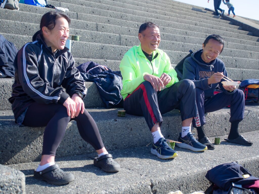 抱負を語り合いながら、体を暖めるべく軽くジョギング。